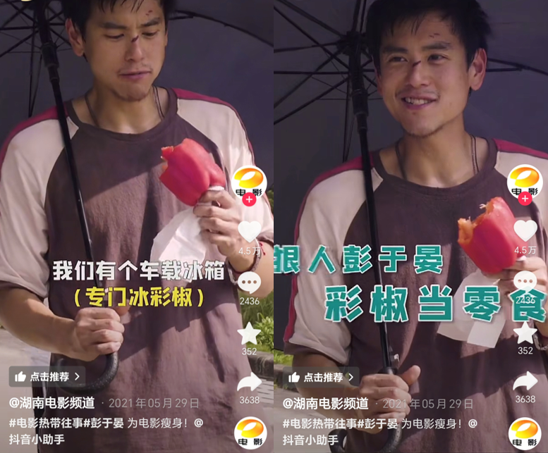 其实早在2021年,健身圈就已经刮起过一阵生啃彩椒的邪修风潮,只不过当时的教主还不是关晓彤,而是另一位同样在减肥史上颇有盛名的演员——彭于晏,这位靠把彩椒当零食啃,足足瘦了32斤的狠人,堪称初代彩椒推广大使。