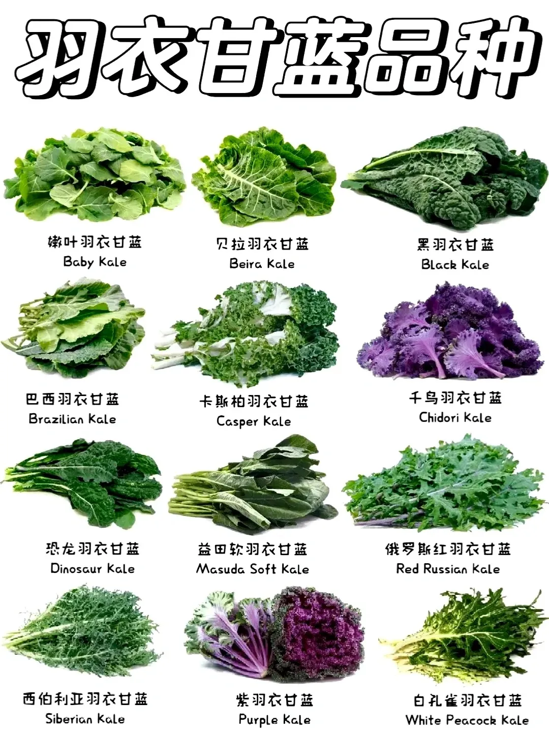 羽衣甘蓝的品种不完全分类 图源:小红书