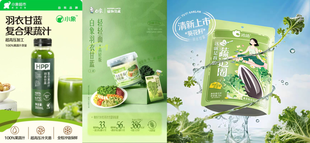 而这些产品也给了其他品牌灵感,比如小象超市上新HPP羽衣甘蓝果汁,白象推出了羽衣甘蓝轻轻面,连洽洽推出了同口味的瓜子。