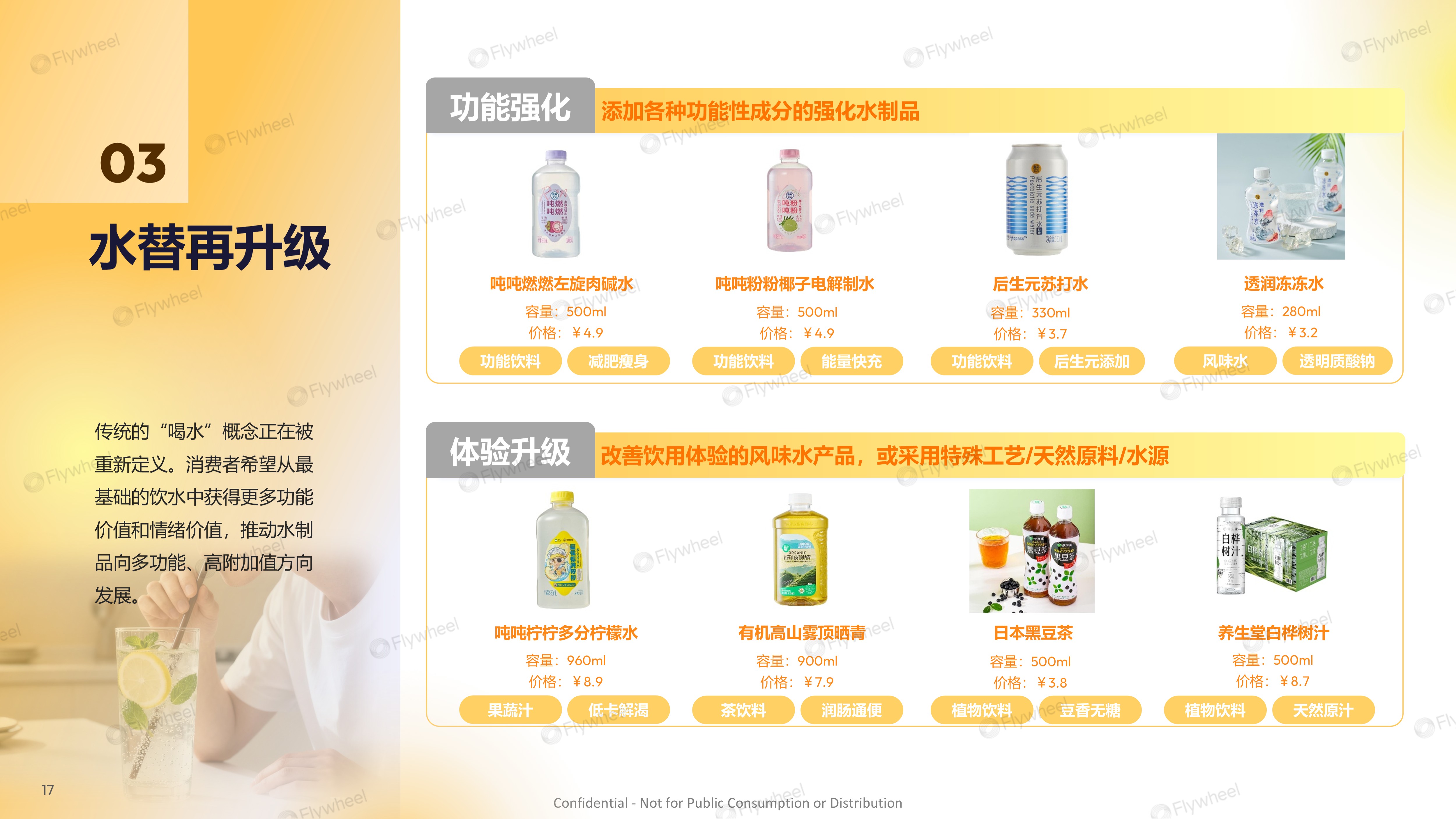 传统的“喝水”概念正在被重新定义。消费者希望从最基础的饮水中获得更多功能价值和情绪价值,推动水制品向多功能、高附加值方向发展。