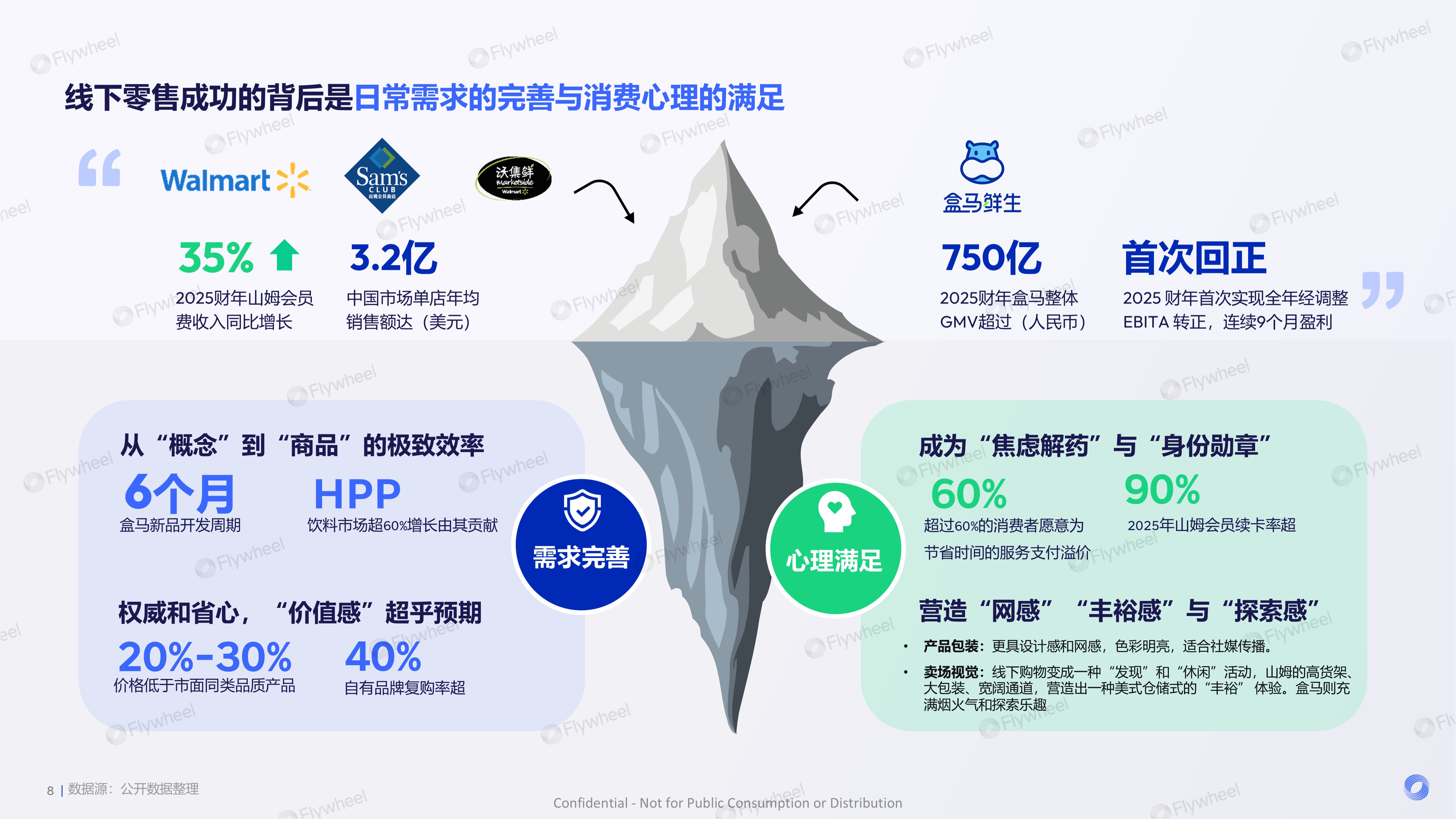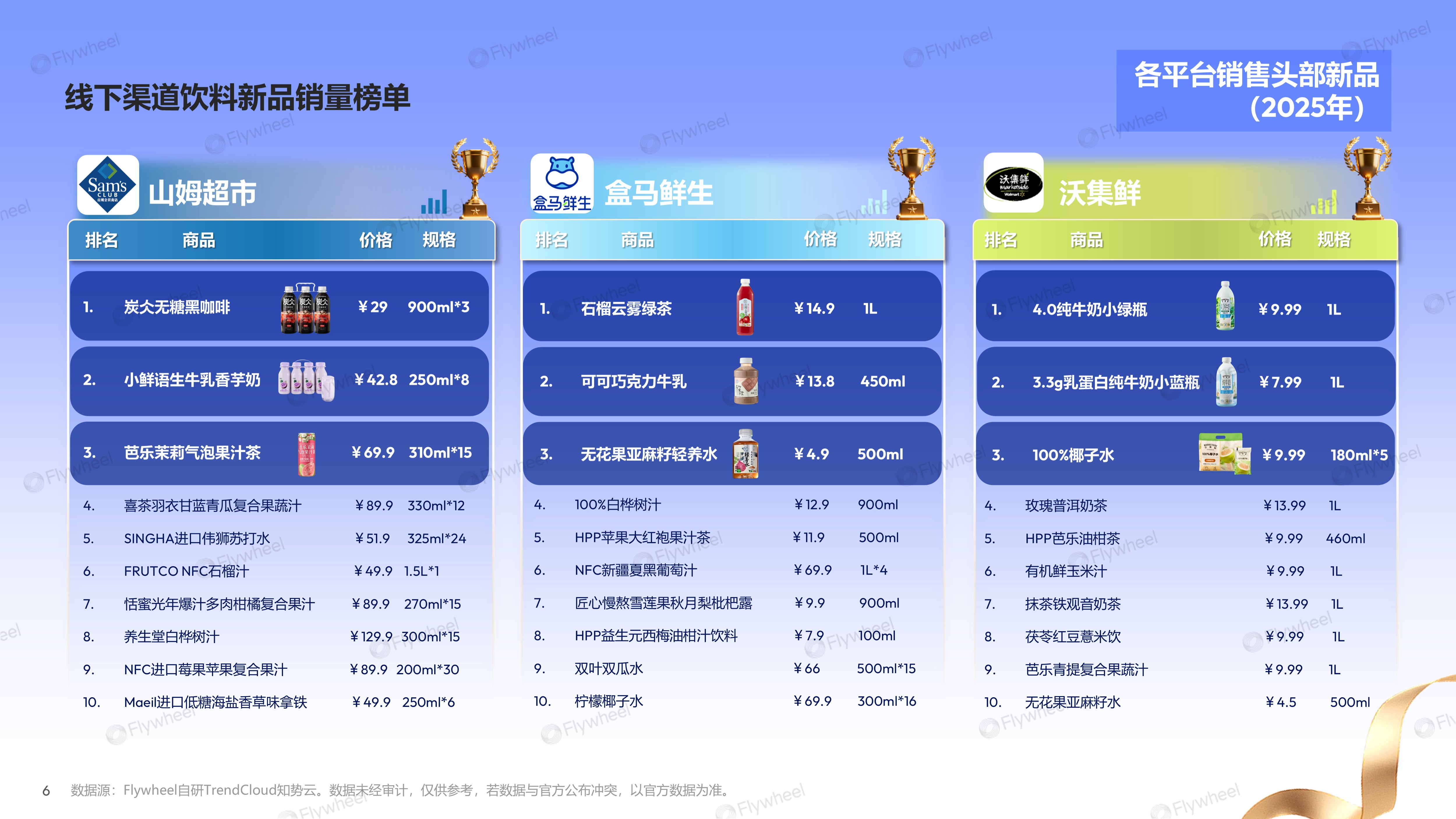 由此,Flywheel飞未聚焦于2025年山姆、盒马、沃尔玛在饮料品类上的创新实践,发布了报告《解码新零售巨头:新品饮料引爆市场的“需求与情感”双密码》,从人货场角度探寻线下饮料新品赢得市场的核心逻辑,并围绕消费者日常需求与心理满足总结线下饮料新品的五大创新趋势,为行业参与者提供参考与启发。