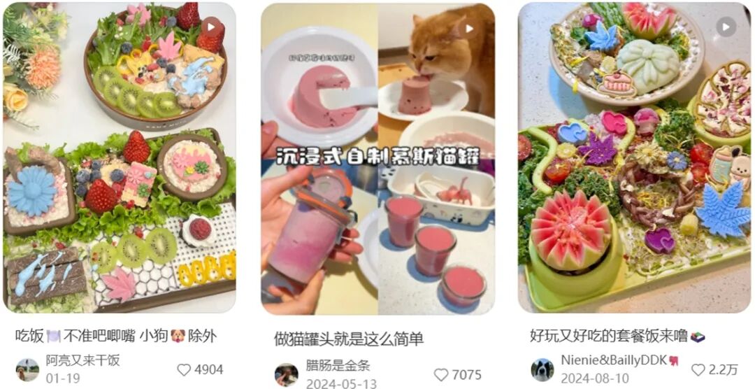 这类自制宠物鲜食内容在小红书上已有超50万篇笔记,累计浏览量突破10亿;在抖音直播间,相关销售场次能吸引数千人观看,多个商品成交数达10万+,俨然成为宠物喂养的新潮流。