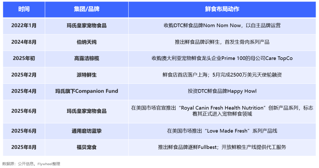 而近年来,皇家、希尔思、蓝挚、伯纳天纯等国内外宠食巨头也纷纷入局,通过收购品牌与供应链布局鲜食市场。