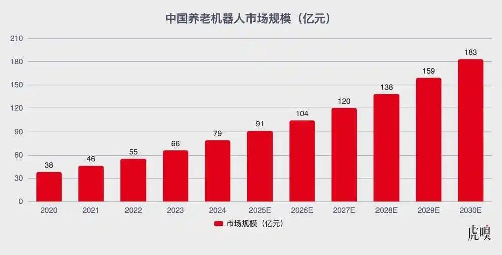 另外,面对养老护理员的巨大缺口,养老机器人将成为未来养老产业的核心支撑,形成百亿级市场规模。深企投产业研究院数据显示,2024年中国养老机器人市场规模约79亿元,预计到2030年将发展到183亿元。