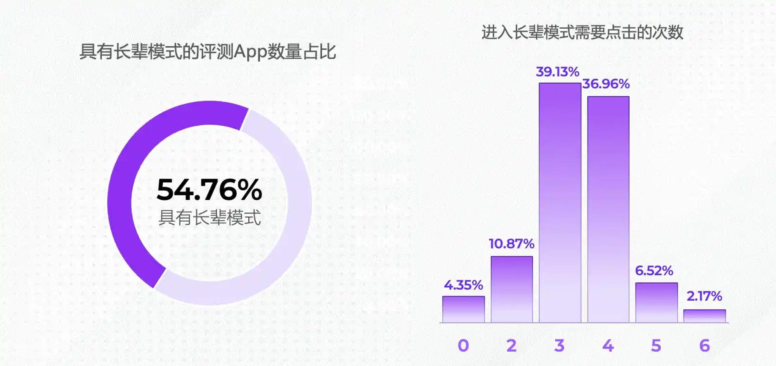 以手机应用程序为例,随着老年人触网率持续提升,APP适老化改造已成为多部门明确要求的重点任务,但实际落地效果却不尽如人意。在媒体评测中,仍有近半数APP没有设置长辈模式,部分APP需要点击多次才能成功切换长辈模式,增加了老年人的操作门槛,广告营销干扰、功能按钮布局混乱等老年用户痛点问题普遍存在。