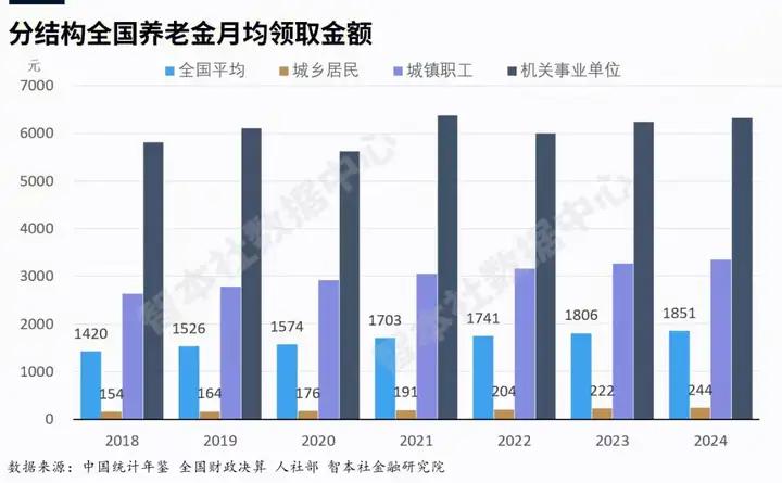 从需求侧看,老年群体的支付能力呈现显著分化。2024年全国离退休人员月均养老金为1851元,但群体间差异显著:城乡居民月均244元,而城镇职工与机关事业单位合并统计的月均水平达3817元,差距达到15倍。